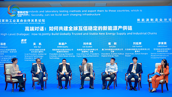 在分论坛的高端对话环节,星云股份副董事长兼总裁刘作斌与行业企业、专家学者、机构代表等同台分享。星云股份近年来积极响应金砖合作倡议,拓展包括印度在内的金砖国家市场,并通过领先的锂电池检测产品与服务、电池智能制造解决方案、充检一体设备等,持续为金砖国家新能源产业链发展提供关键技术支持。刘作斌总裁主张通过建立全球统一的技术标准与认证互认体系来共建互信稳定的新能源产供链,并通过将高精度、高可靠性的检测数据作为行业的“通用语言”,实现从“电芯→模组→PACK”全生命周期的质量可追溯、可验证,打破不同国家之间在新能源领域的技术壁垒与信任隔阂,让电池的安全与性能成为全球市场互认的“硬通货”,最终推动新能源产业在透明、协作、互信的基础上实现高质量可持续发展。
