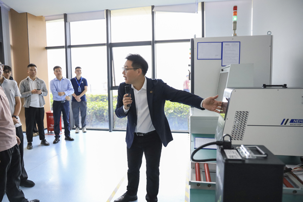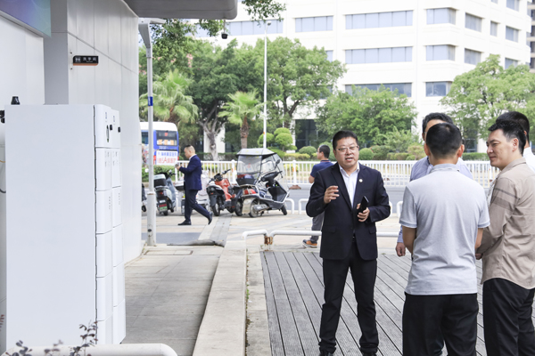 星云股份副董事长兼总裁刘作斌带领客户嘉宾参观、体验电动自行车、电动摩托车电池检测