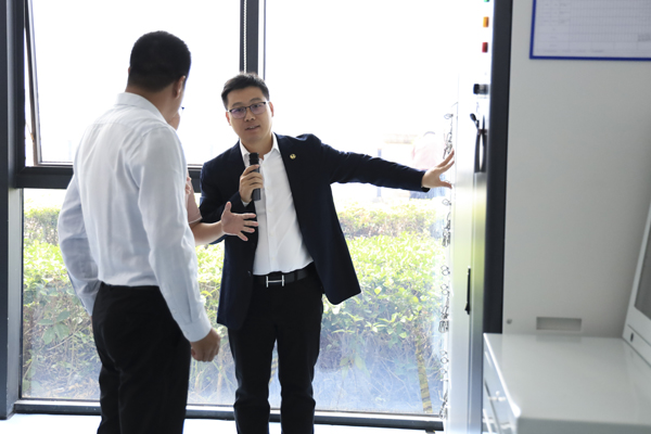 星云股份副董事长兼总裁刘作斌带领客户嘉宾参观、体验电动自行车、电动摩托车电池检测